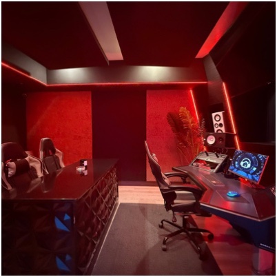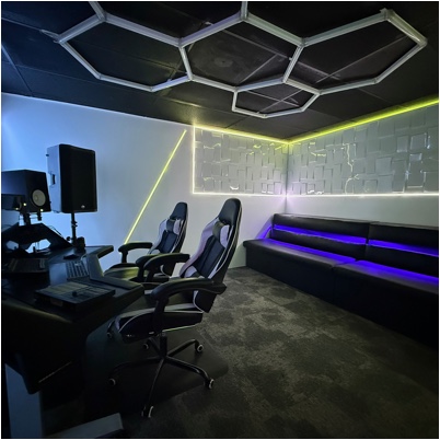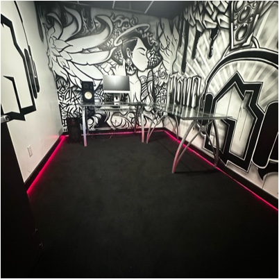 A private creative zone for producers, streamers, or content creators. Ideal for beat cook-ups, recording demos, or streaming sessions. Equipped for plug-and-play setup with a creative vibe.