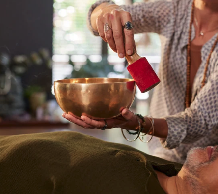 - Optional sound elements such as singing bowls, tuning forks, or chimes