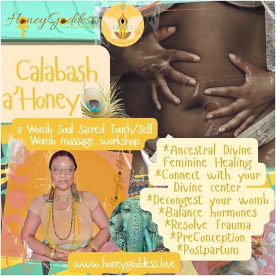 Calabash of Honey: a Womb Soul Sacred Touch/ Self Womb Massage Workshop is the long awaited Womb Wisdom class you’ve all been asking for. This Indigenal Ancestress Divine Feminine practice has been observed throughout the antiquity around the world and has far reaching benefits including: