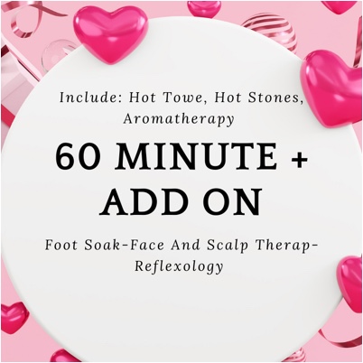 Wrap yourself in warmth, intention, and deep relaxation with this Valentine’s-inspired therapeutic massage designed to soothe the body and soften the heart. This 90-minute session features luxurious hot stones to melt away tension, warm aromatherapy towels infused with calming scents, and a slow, nurturing flow that promotes total-body relaxation and emotional ease.