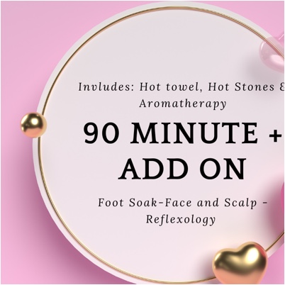 Your session starts with a warm relaxing Foot Spa, which includes a detoxing foot soak , foot scrub, ending with a herbal butter hot stone reflexology massage.