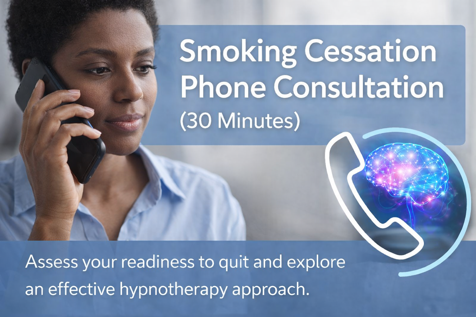 This 30-minute phone consultation is a required first step for clients interested in smoking cessation hypnotherapy.