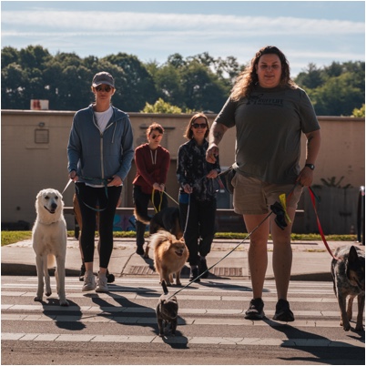 Each excursion begins with a short mini-lesson, where we introduce a training focus and review practical strategies you can immediately apply during the walk. From there, participants engage in hands-on, guided practice as we move together as a group, working on skills such as loose-leash walking, neutrality around other dogs and people, engagement with handlers, and calm behavior in stimulating environments.