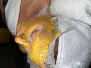 This treatment beings with a double cleanse followed by a facial massage, exfoliation, elastin skin tightening mask mixed with gold lifting mask, scalp massage, product infusion and microcurrent and ends with cool globe massage and finishing products.