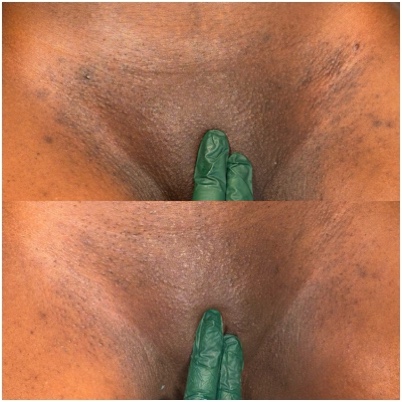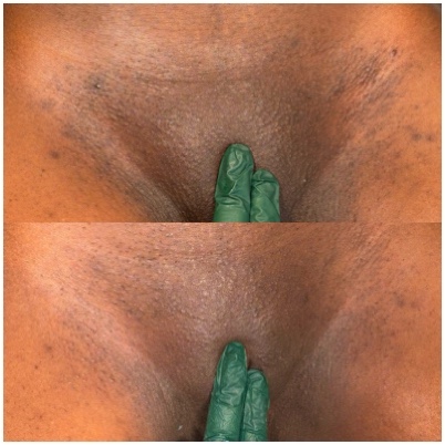 TRŪRadiance Intimate Bleaching is a safe and gentle chemical peel treatment that is also non irritating and an easy way to lighten your skin and bring your confidence level up. Peeling is to be expected for some up to 14 days after treatment. This is not a one time fix, for best results 3-6 treatments are needed for more desirable results.