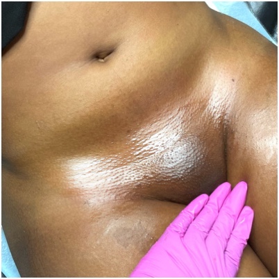 TRŪRadiance Intimate Bleaching Tier 2 is a step up above Tier 1. With this Liquid Microneedling is added to reach deeper in the skin for better results as well as boost collagen, unclog and smooth texture.